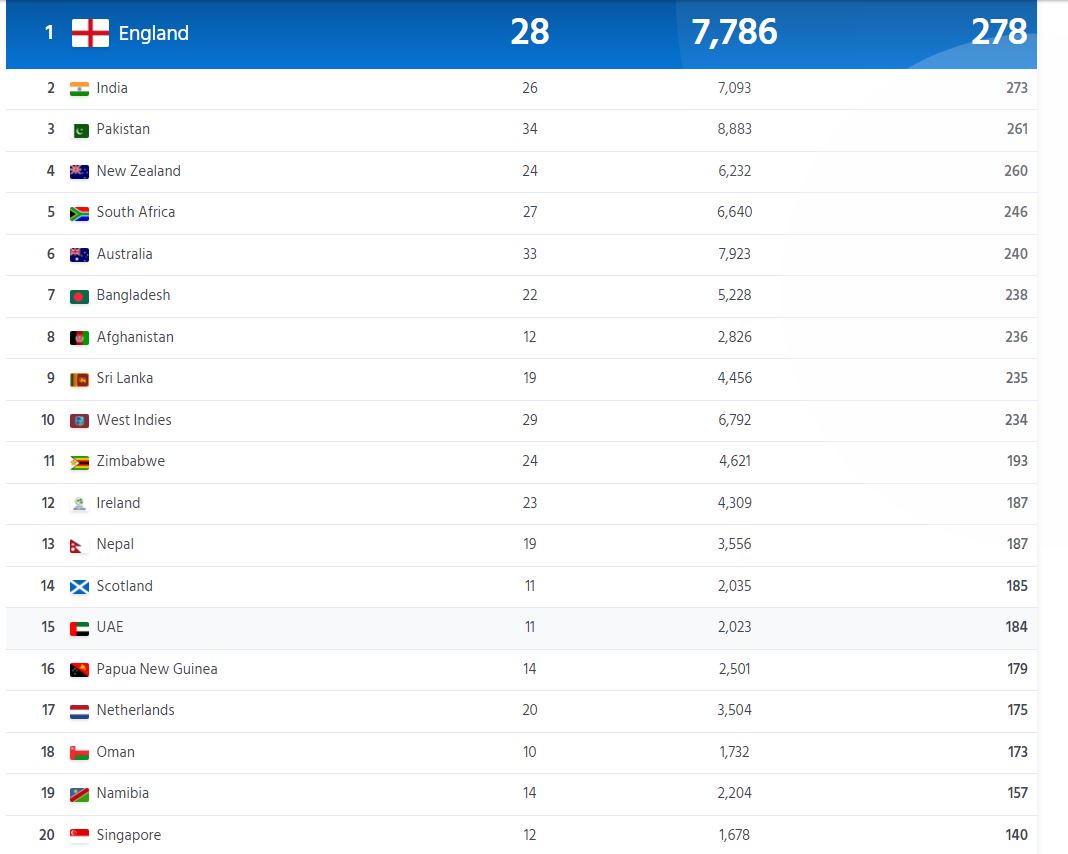 काठमाडौं । आईसीसी टी-२० वरीयतामा नेपालमा एक स्थान तल झरेको छ । अन्तर्राष्ट्रिय क्रिकेट परिषद (आईसीसी)ले बुधबार अपडेट गरेको वरीयतामा नेपालको वरीयता खस्किएको हो ।