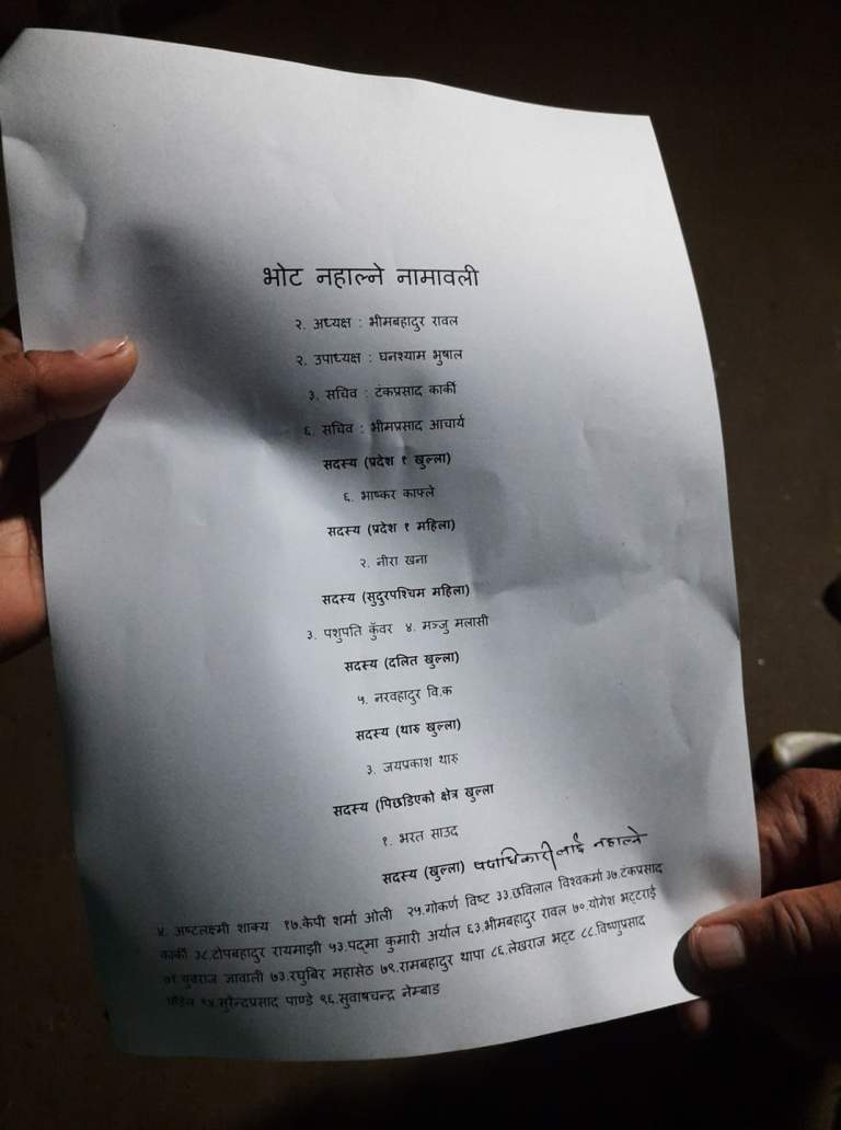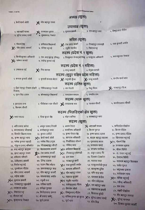 चितवनमा जारी एमालेको नयाँ नेतृत्व चयनका लागि भएको मतदानमा अध्यक्षका उम्मेदवार केपी शर्मा ओली पक्षले आफ्नो समूहका उम्मेदवारको सूची तयार गरेर प्रतिनिधिलाई वितरण गरेको छ ।