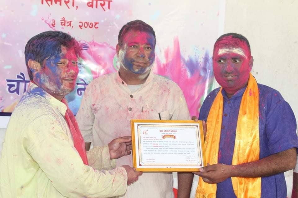 यसैबिच, होली मिलन कार्यक्रममा चौतारी बाराले प्रेस चौतारी नेपालको नवौं महाधिवेशनबाट सचिबमा सर्वसम्मत चयन भएका कमल कुमार उपाध्यायलाई सम्मान समेत गरेको छ । यस्तै चौतारी बाराबाट प्रेस चौतारी मघेस प्रदेशमा उपाध्यक्षमा चयन भएका अनिल तिवारी, सदस्यमा चयन भएका सपना ढकाल, भवानी सुवेदी र शम्भु महतोलाई समेत सम्मान गरेको हो ।