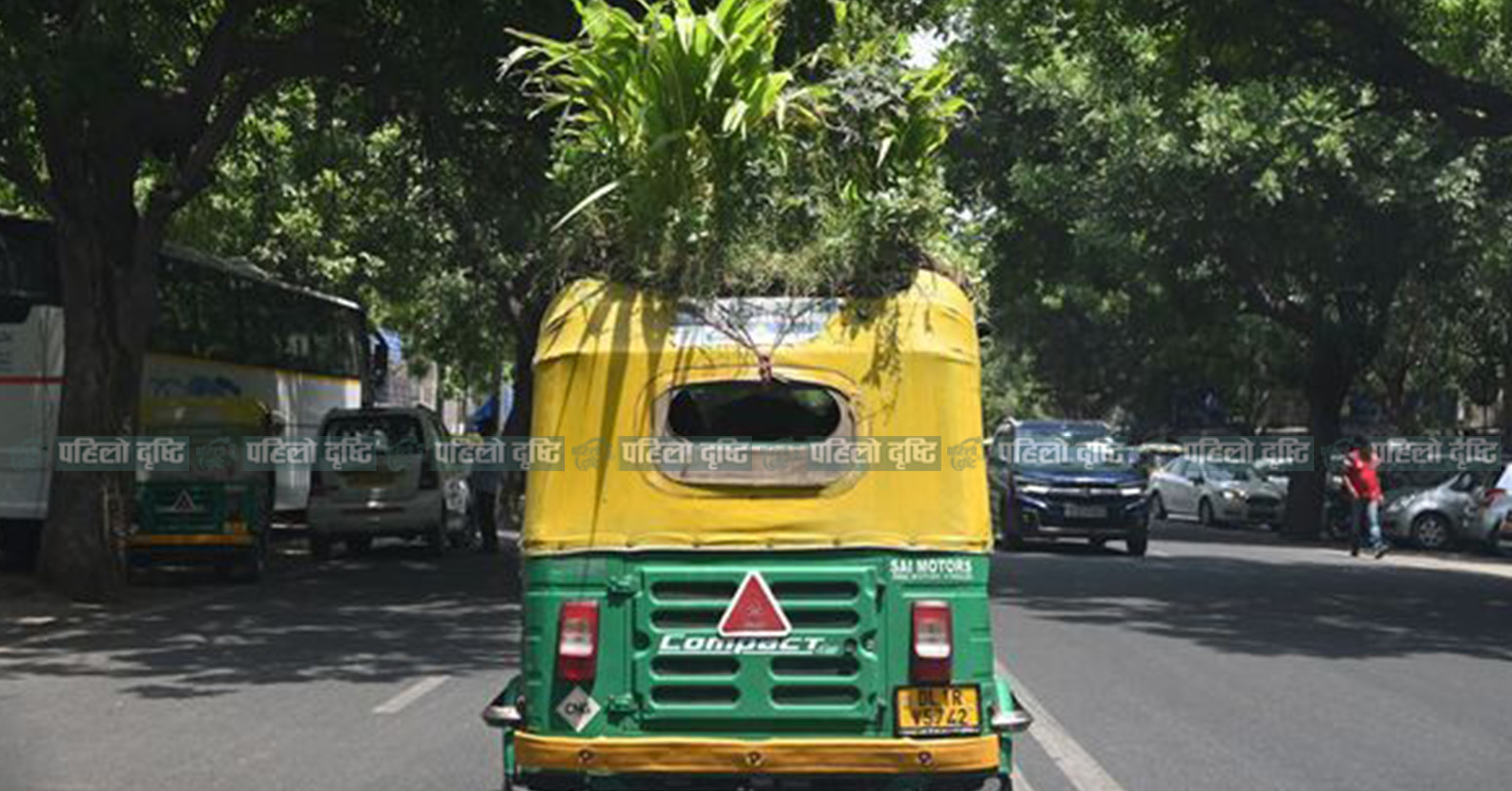 राजधानीमा ४५ डिग्री सेल्सियसबीच छतमाथिको बगैैचाले उनको गाडीलाई चिसो राख्छन् । ४८ वर्षीय कुमारको ‘मुभिङ गार्डेन’ ले अटोरिक्सभित्र यात्रा गर्दा फोटो वा भिडियो खिच्ने ग्राहकहरूलाई आकर्षित गरिरहेको छ ।