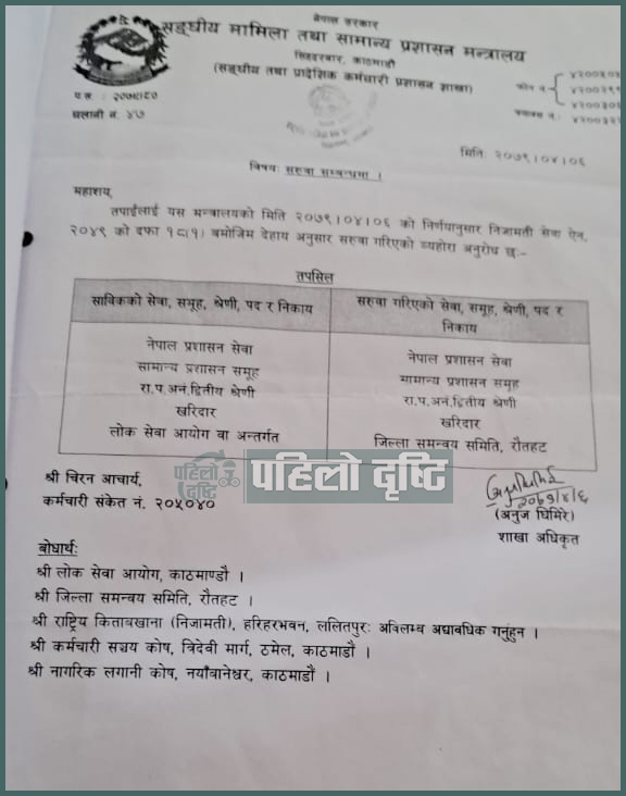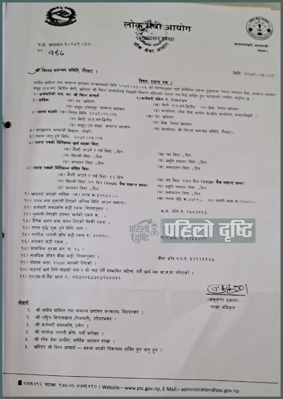 भदौ २ गते लोक सेवा आयोगबाट प्राप्त रवाना पत्र