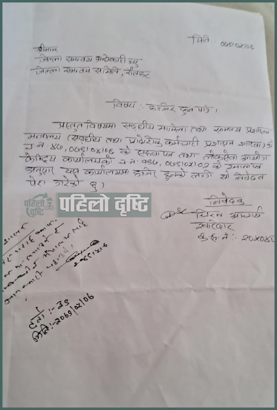 भदौ ६ गते जिल्ला समन्वय समिति रौतहटमा हाजिर गराउन दिएको निबेदन