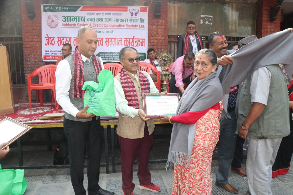 आभाष बचत तथा ऋण सहकारी संस्था लिमिटेडले संस्थामा आबद्ध ७५ वर्ष भन्दा माथिका जेष्ठ सदस्यहरुलाई सम्मान गरेको छ ।
