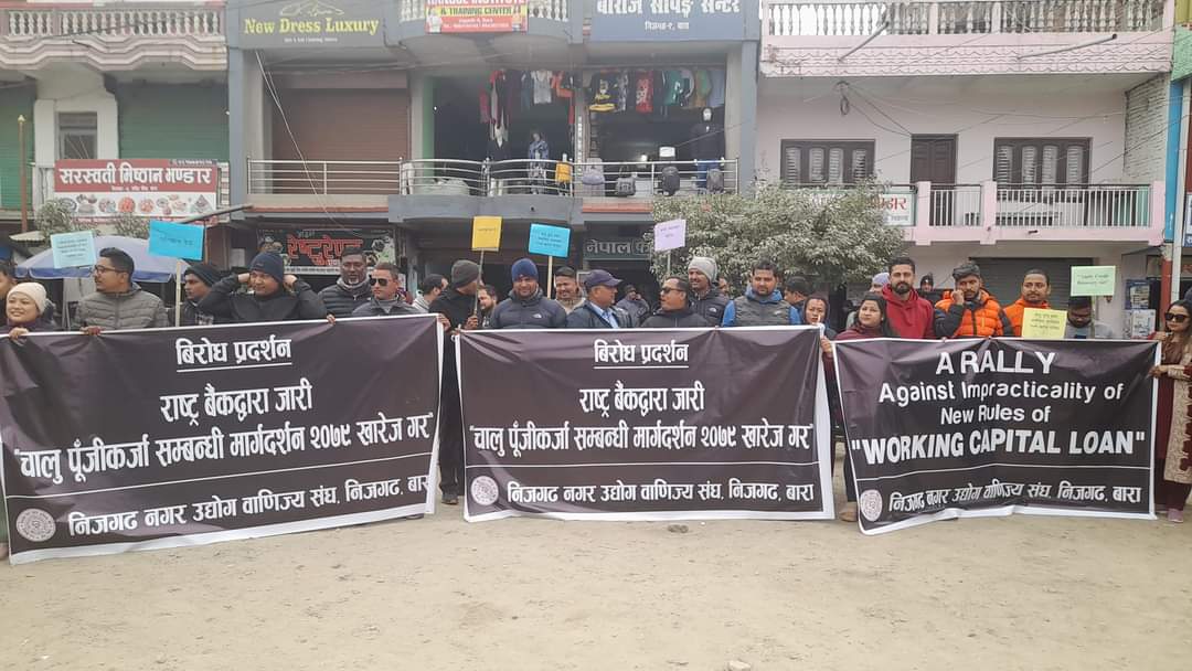 चालु पुँजी कर्जा मार्गदर्शन खारेज गर्न माग गर्दै निजगढमा प्रदर्शन
