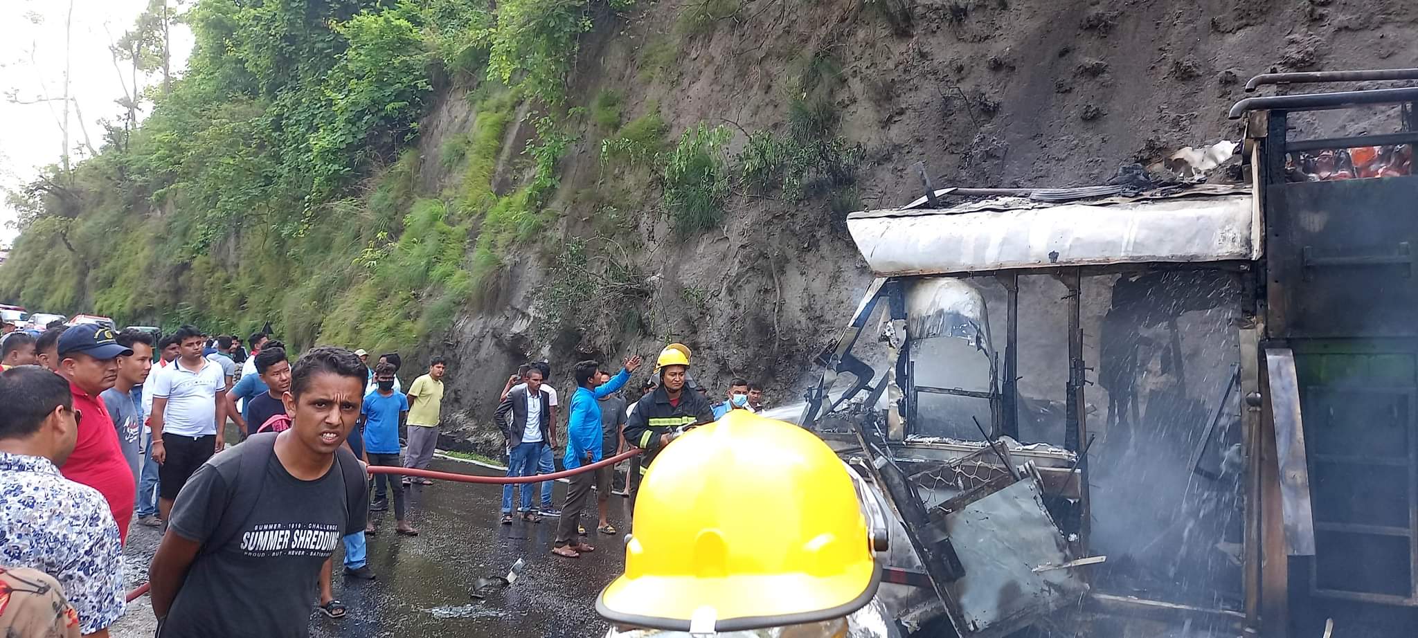 बारामा दुई ट्रक एक आपसमा ठोक्कियो, एक ट्रक जलेर नष्ट