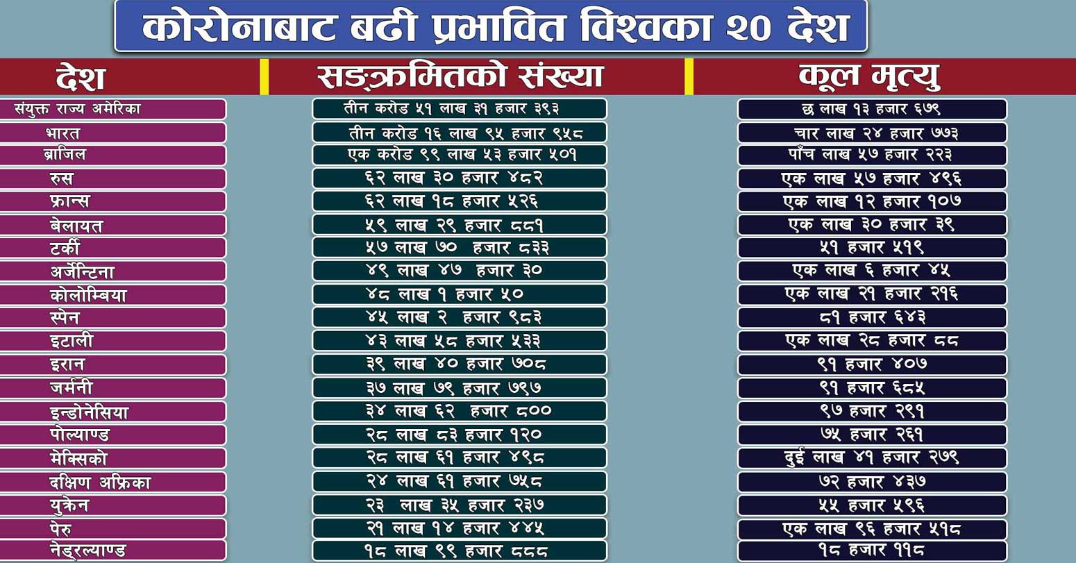 विश्वभर कोरोना भाइरसबाट ४३ लाख ९० हजारभन्दा धेरैको मृत्यु