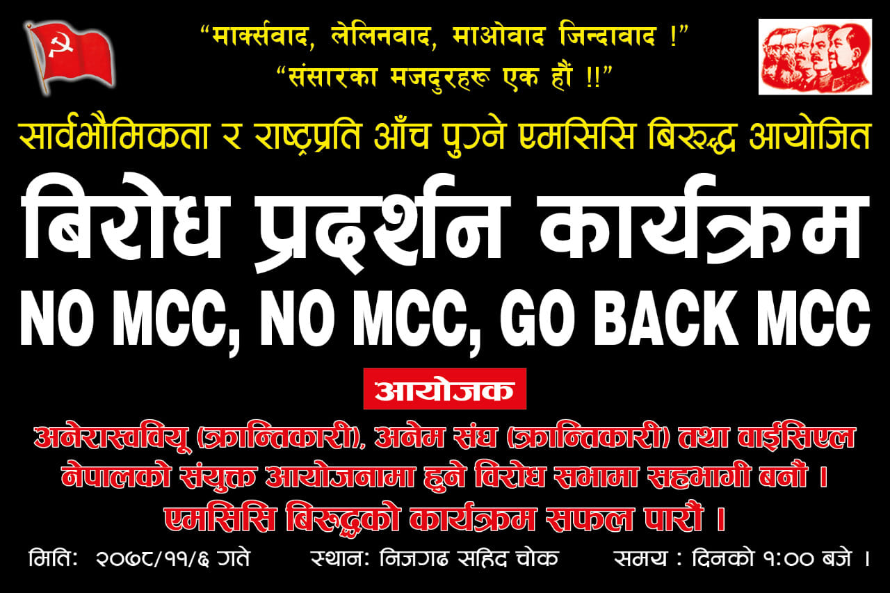एमसीसीको विरोध माओवादी केन्द्रले भोली निजगढमा प्रदर्शन गर्ने